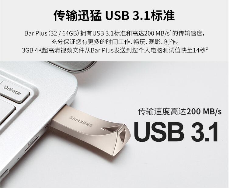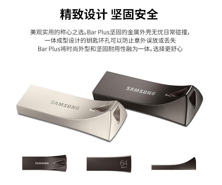 三星優盤64GB USB3.1 U盤 BAR升級版+高速汽車載歌曲金屬外殼精致