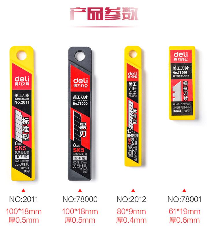 得力美工刀片 標準型8盒(80片) 用30度雕刻貼膜專用墻紙壁紙大碼梯形刀片切紙80片裝批發