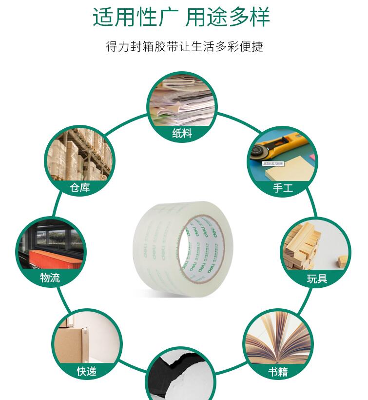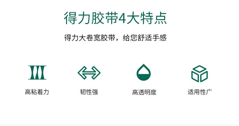 得力33497高透明膠帶 1筒6卷 封箱大號4.8/6cm寬膠帶大卷快遞可定制打包批發膠布封口固定高粘度不易斷6卷裝封箱膠帶